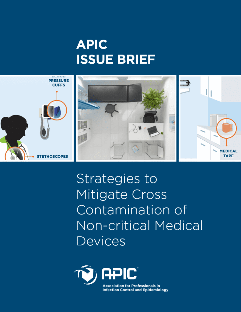 This issue brief addresses high-level themes regarding contamination of multiple-use, non-critical medical items frequently used across patient care settings. The goal is to shed light on best practices for minimizing infection risk from these types of items. The brief covers non-invasive, non-critical medical devices such as blood pressure cuffs, oxygen saturation monitors, and stethoscopes, as well as therapy toys and other multiple-use items that come in contact with intact skin, such as medical tape. It does not cover contamination of semi-critical or critical medical devices.